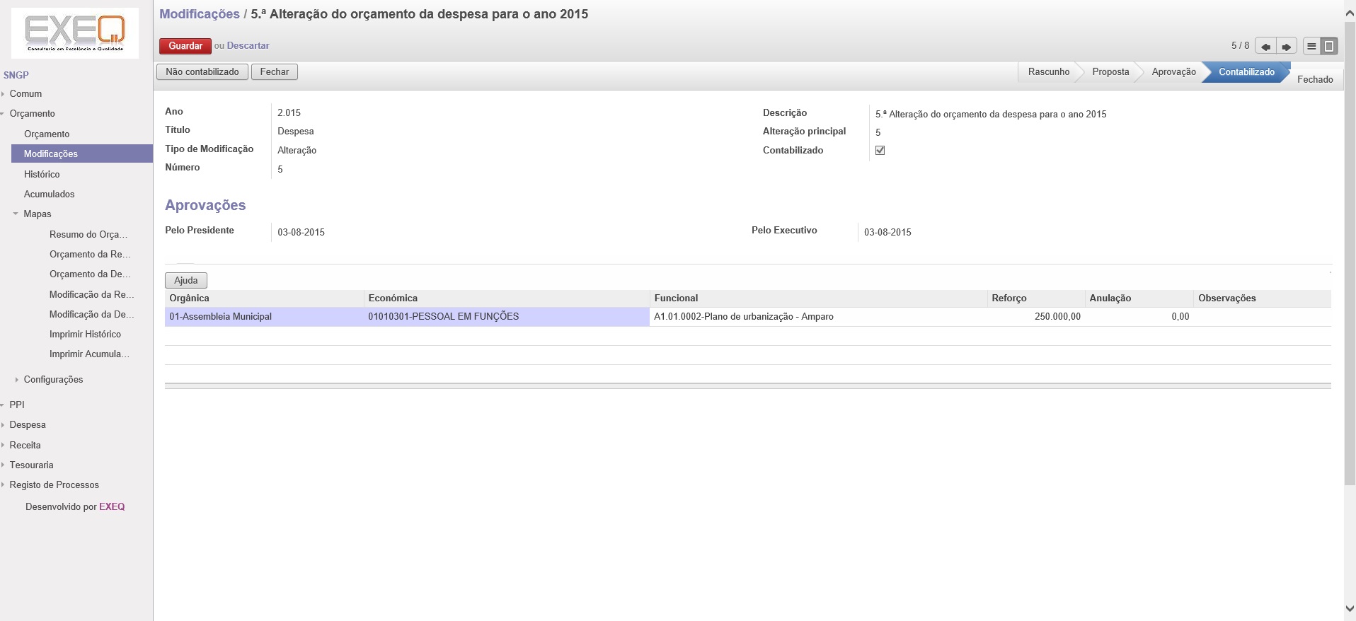 Rascunho - Proposta - Aprovação - Contabilização - Fecho